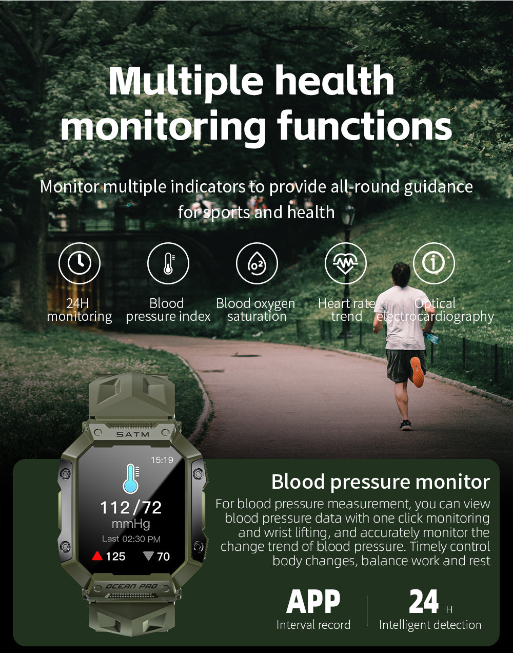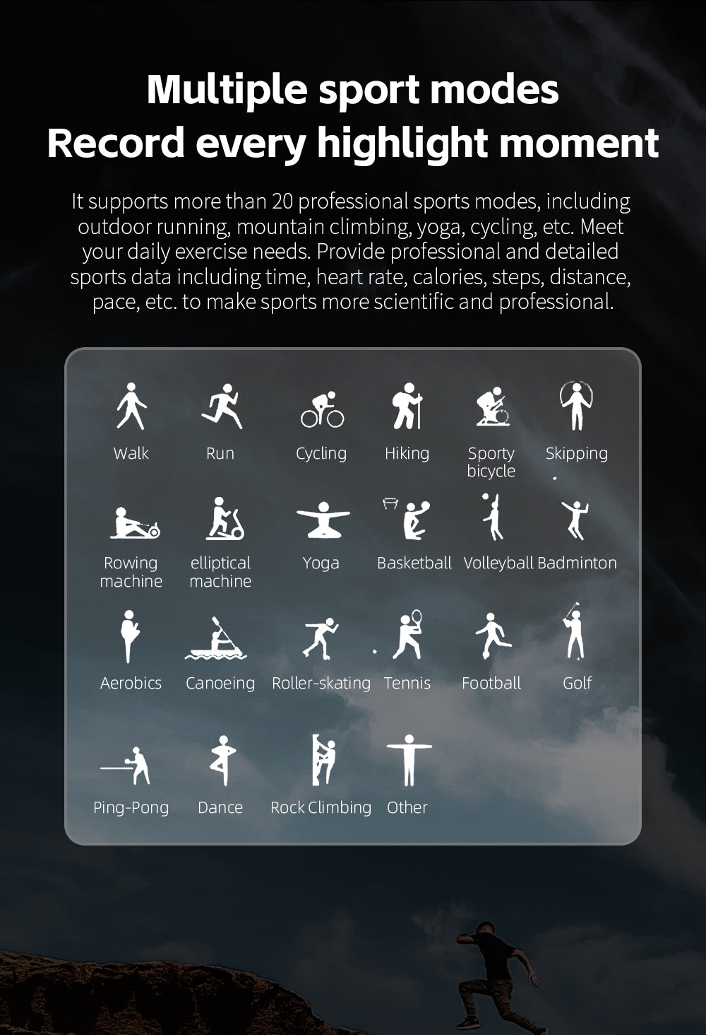 Custom watch face, step counting, brightness adjustment, multi-sport mode, sleep detection, heart rate, blood pressure, breathing training, information push, remote music, remote photo, real-time weather, find mobile phone (connected to mobile phone), alarm clock, stopwatch, do not disturb Mode, call reminder.